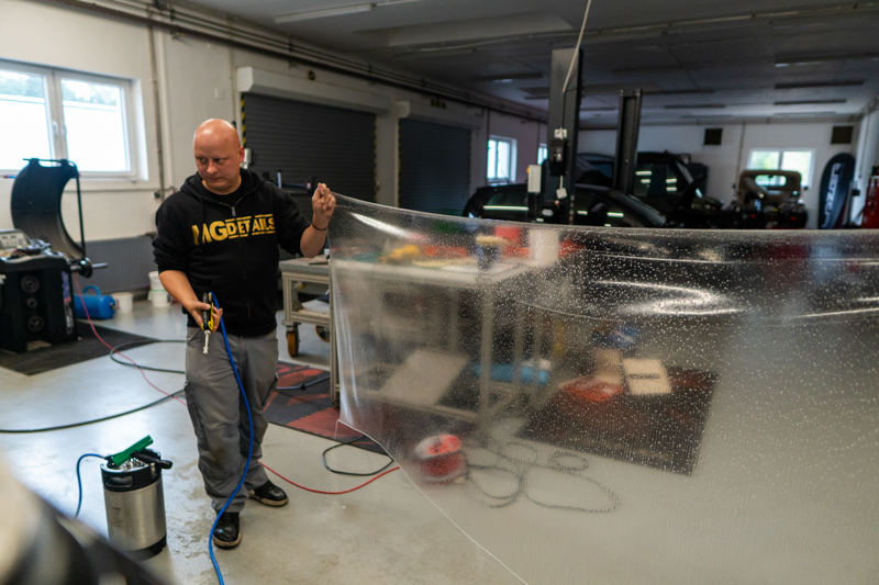 Vše aplikujeme v čistém, klimatizovaném prostředí s profesionálním vybavením. Fólie přesně přizpůsobíme tvarům karoserie a zaručíme čistý výsledek bez bublin.